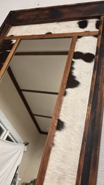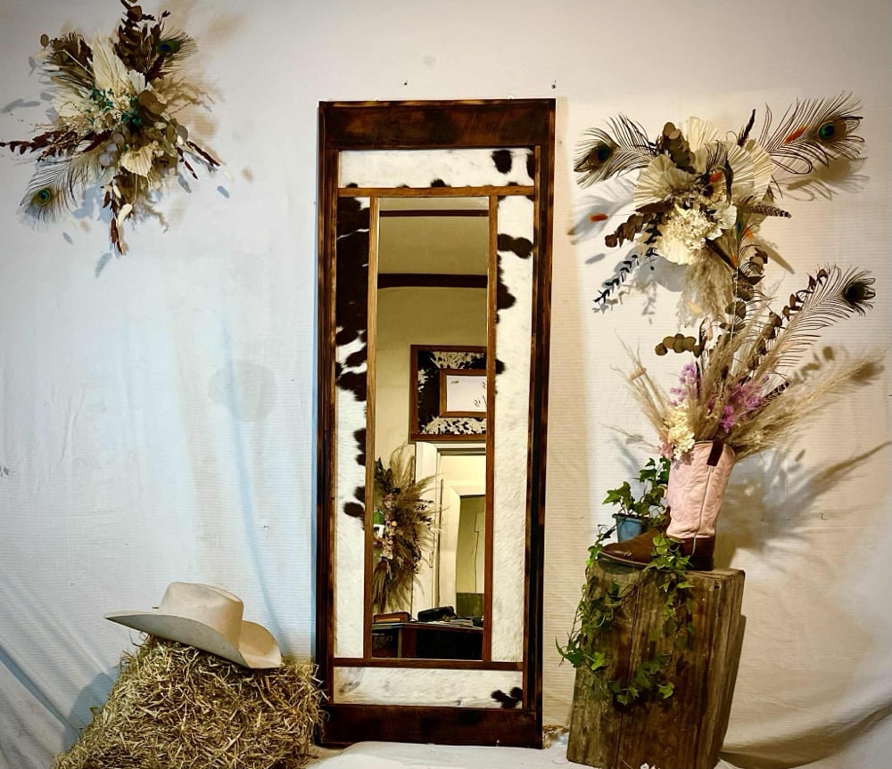 Add a touch of rustic elegance to your space with this striking Rimu and cowhide mirror. Standing tall at 1.65 meters with a width of 600 cm, this piece is sure to make a statement. The rich, dark Rimu wood frame beautifully complements the unique cowhide pattern, creating a focal point that blends natural textures with sophisticated design. Perfect for adding depth and character to any room!